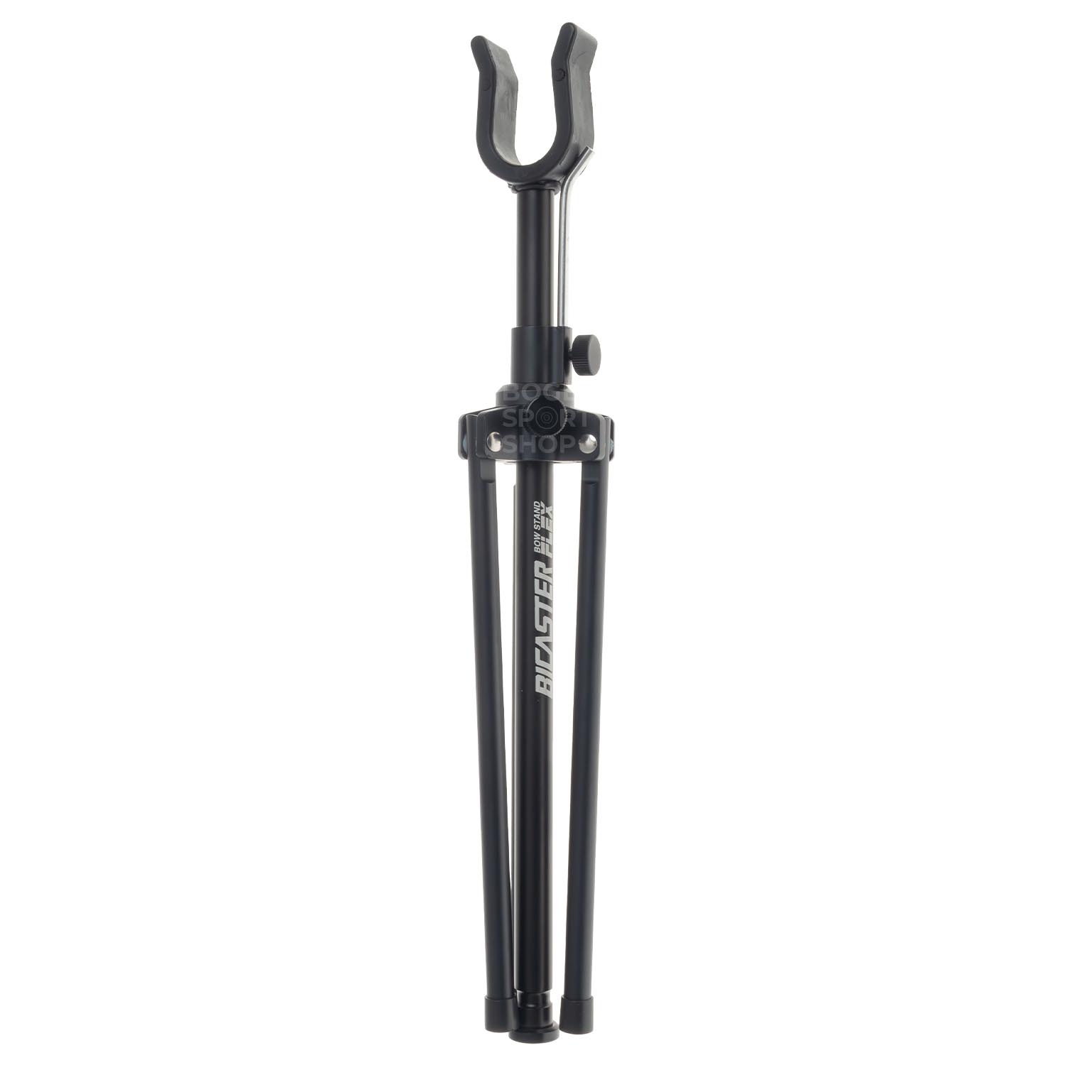 Der RCL Bogenständer von Bicaster ist kein Fliegengewicht, dafür aber super stabil. Alle Teile sind aus Aluminium oder Edelstahl hergestellt, Kunststoff kommt weder bei den Feststellschrauben noch bei der Sehnenklemme zum Einsatz. Sowohl die Aufnahme für die Sehne als auch das Dreibein kann auf dem Hauptrohr nach oben verschoben werden um das minimalste Packmaß zu erreichen. Die Aufnahme für das Griffstück ist gummiert und relativ schmal, damit ein sicherer Halt für den Bogen gewährleistet ist.